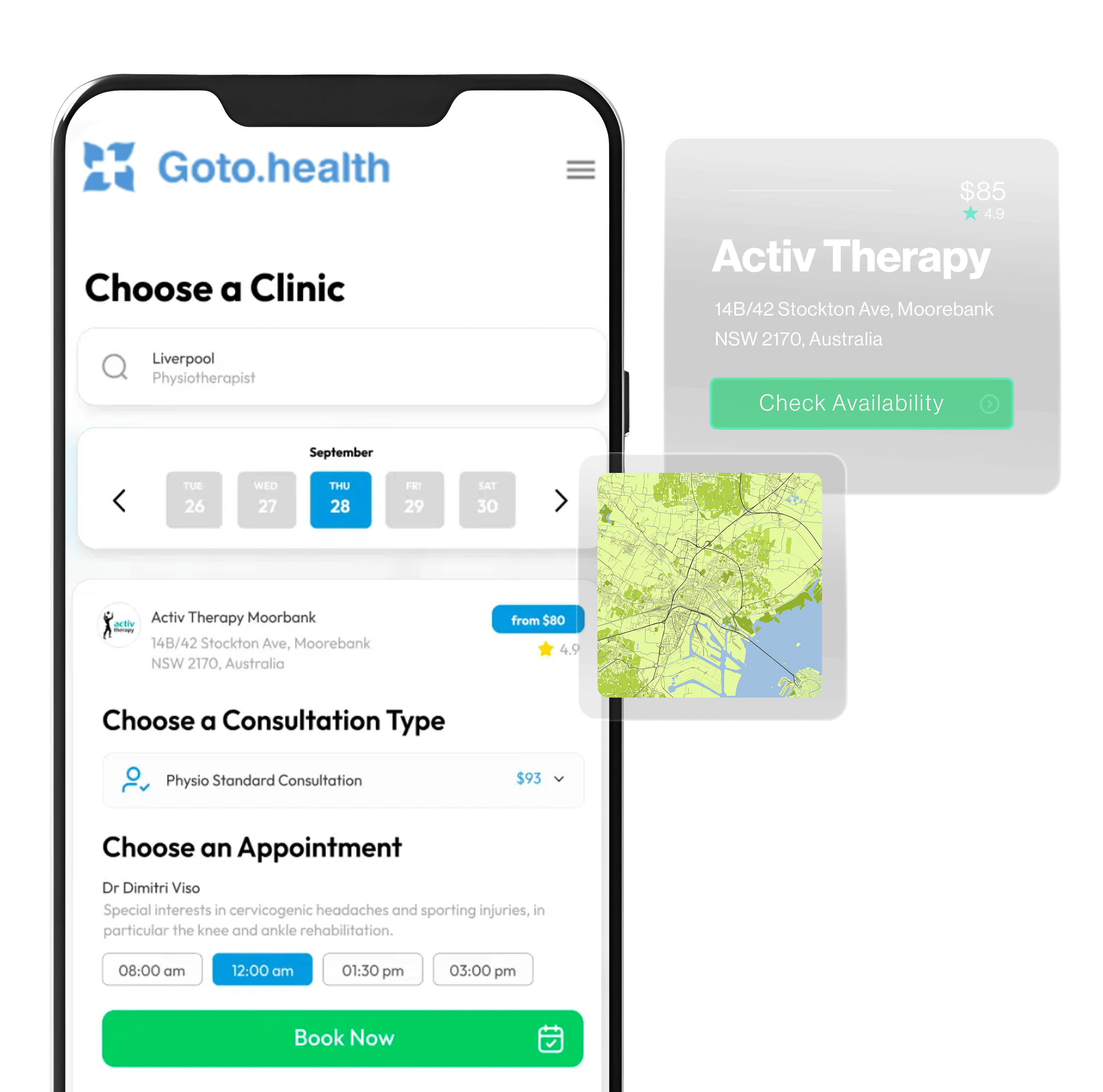 Goto.health’s seamless booking platform operates all across Australia. Just enter your desired location and the appointment type you are looking for, and we will display the next available appointment.